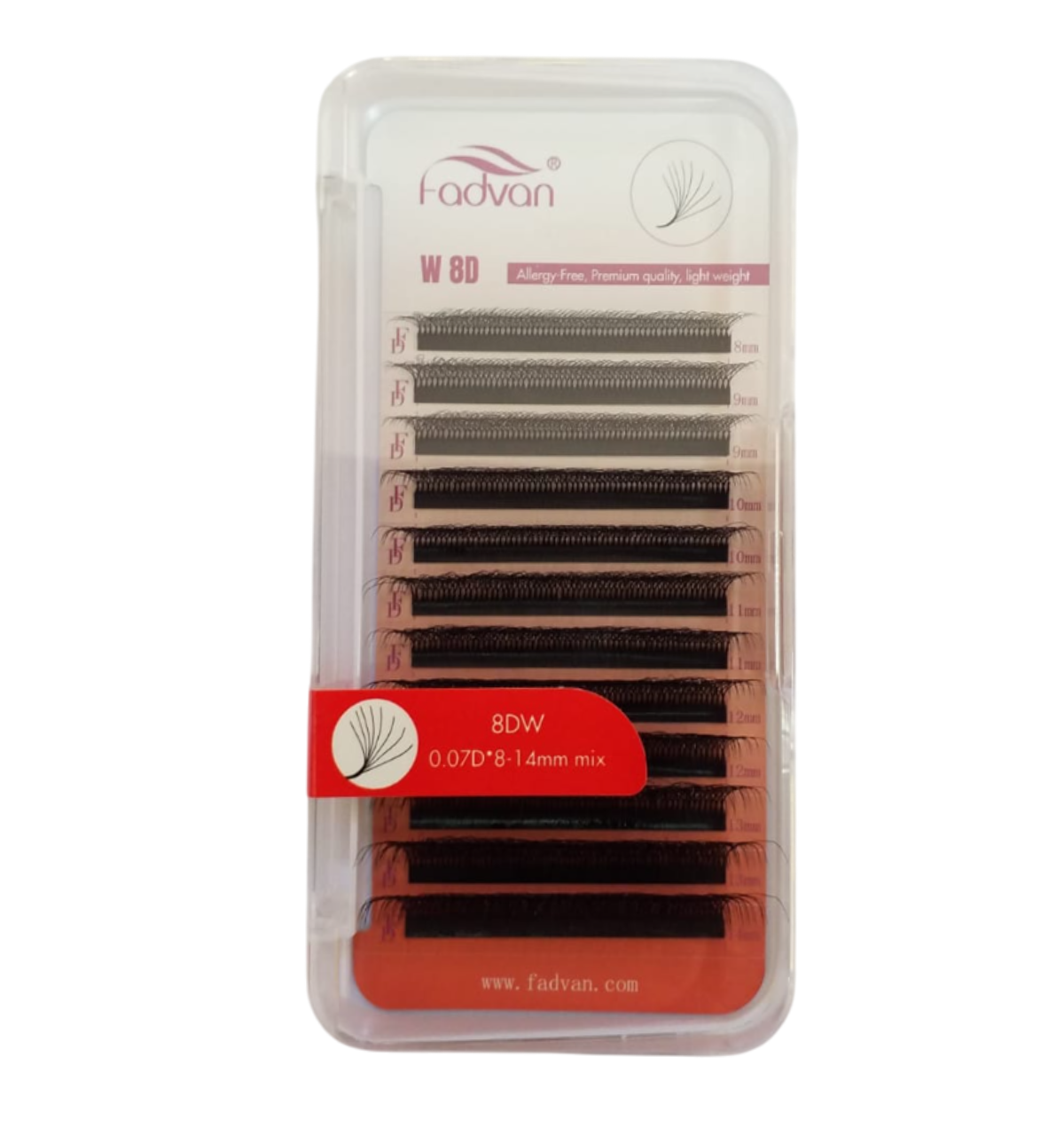 Cílios para Extensão Fadvan – 8D W | 0.07D | Curvatura D | Mix 8–14mm